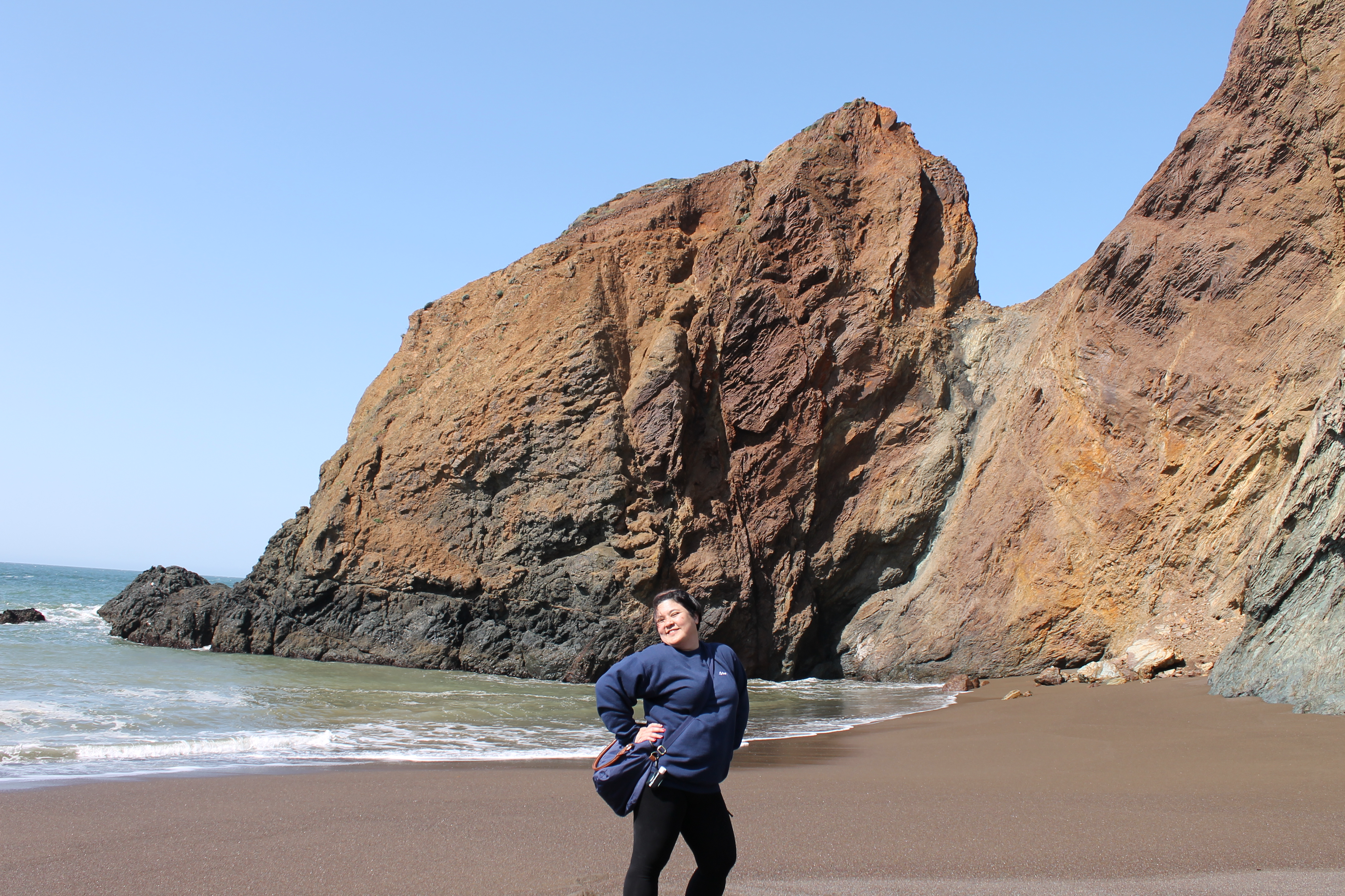 We crossed the Golden Gate Bridge and as always, I was in awe of how amazing this bridge was. In just a few minutes, we had gotten our gear ready and we set off on our hike. I was worried that I’d have to ask for mini-breaks but surprisingly, the photo stops were enough to keep me going. And, of course Inday found trees and rocks to pose in front of. In the distance, I could see the Pacific Ocean. So near and yet so far…
