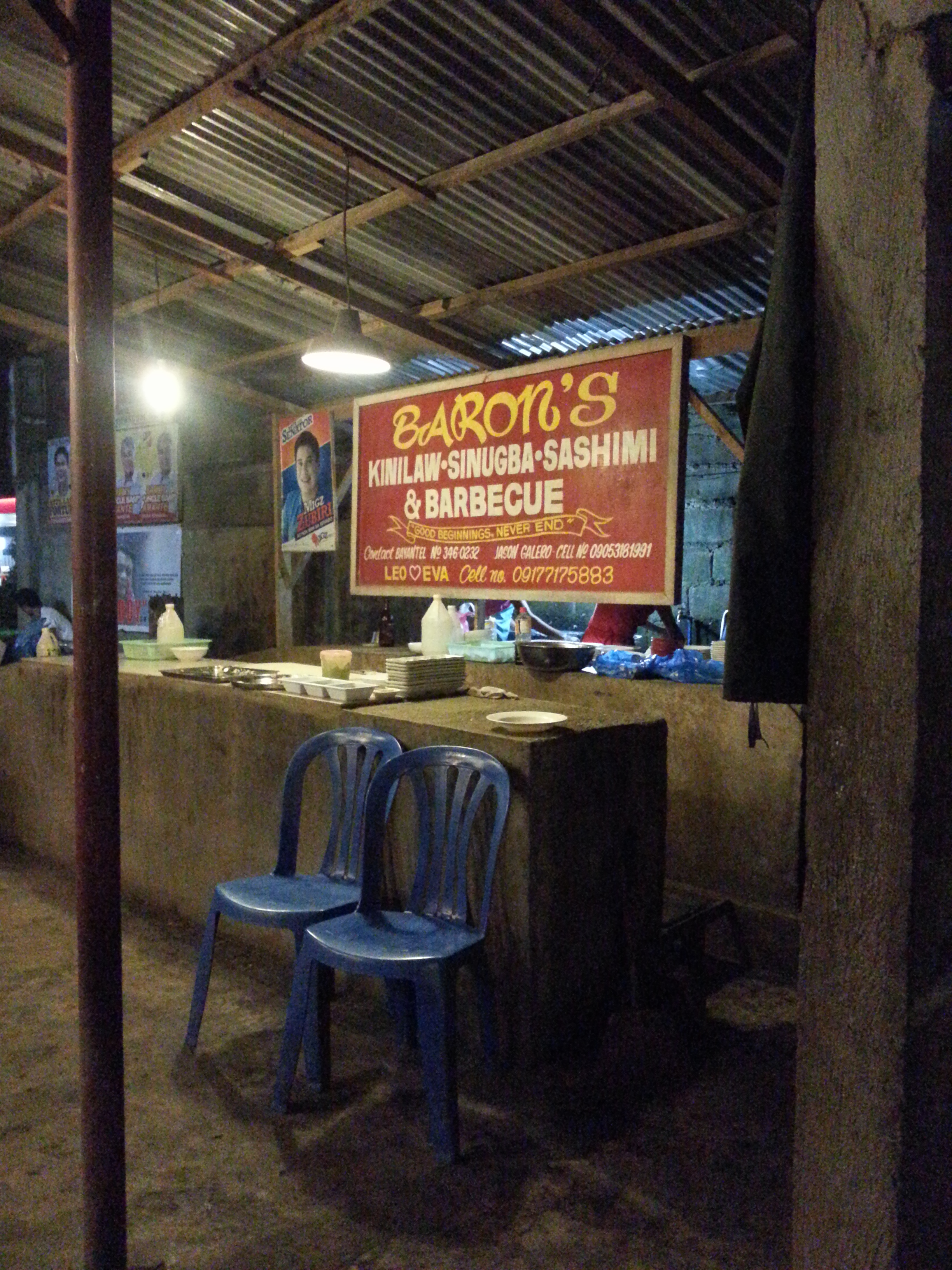 And where was dinner?  At Baron’s.  This Car Wash by day and restaurant by night did not disappoint.  The whole team could barely stand after feasting on Sinuglaw, a mouth-watering combination of inihaw na liempo and kinilaw.  The Spicy Paksiw na Gingaw was another winner.  I’m not a big spicy food fan, but I couldn’t resist the tasty and tender fish chunks.  And what better beverage to wash down all this goodness, a glass of fresh mango juice.